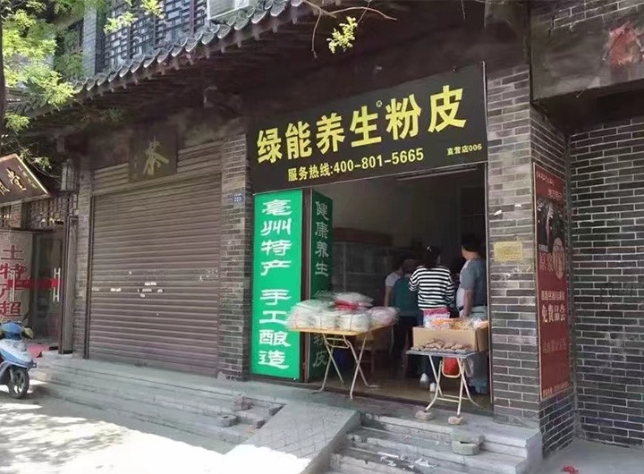 亳州市綠能食品有限公司始建于2009年,本廠坐落于安徽亳州古井鎮(zhèn),占地面積6000多平方米,擁有固定資產(chǎn)3000多萬元,各類專業(yè)技術(shù)人才12人。2011年綠能養(yǎng)生粉皮第六家直營店位于老街花戲樓西門